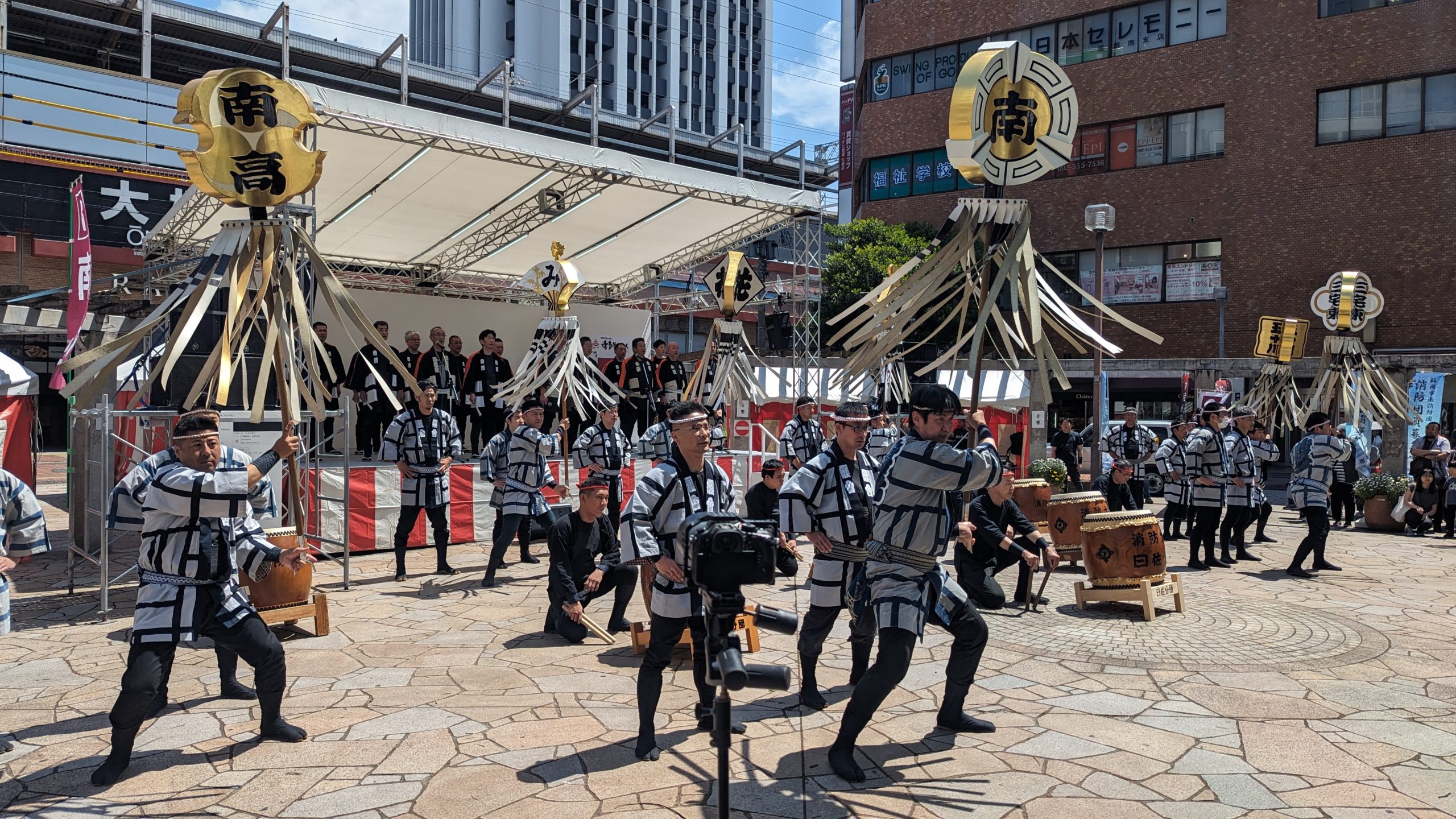 動画あり★博多どんたく★天神・市役所前広場で消防伝統技術披露★南消防団も出演!