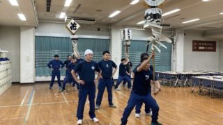 2025年10月3日(金) 明日の高木フェスタに向け 五十川分団さんの車庫にて 合同訓練を行いました。 太鼓は車庫2階で行いました。